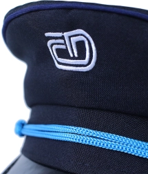 Fekete/kék sapka, fehér tárcsa, kék síp