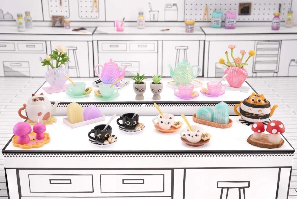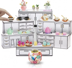 Lépjen be a gondosan kidolgozott miniatűrök világába, amelyek úgy néznek ki, mint az igaziak! Minden meglepetésgömbben alkatrészek és kiegészítők várnak aranyos lifestyle dekorációk összeállításához – a teáskészletektől a gyertyákon át az elegáns vázácskákig. A kreatív folyamat egyszerű és szórakoztató: szerelje össze, dekorálja, majd hagyja fényen megkeményedni.