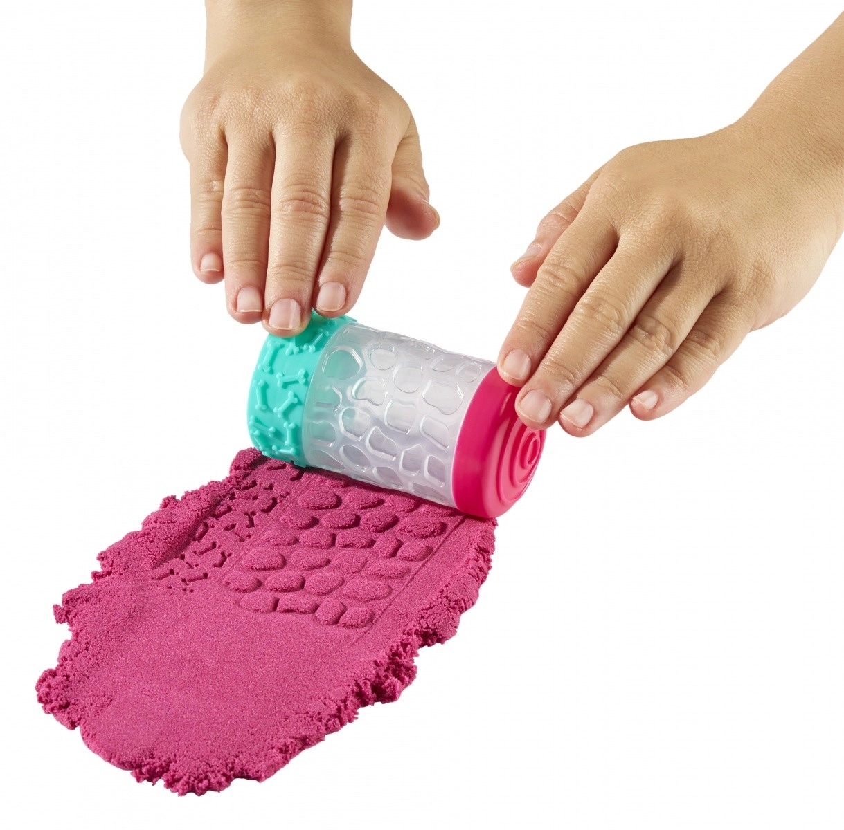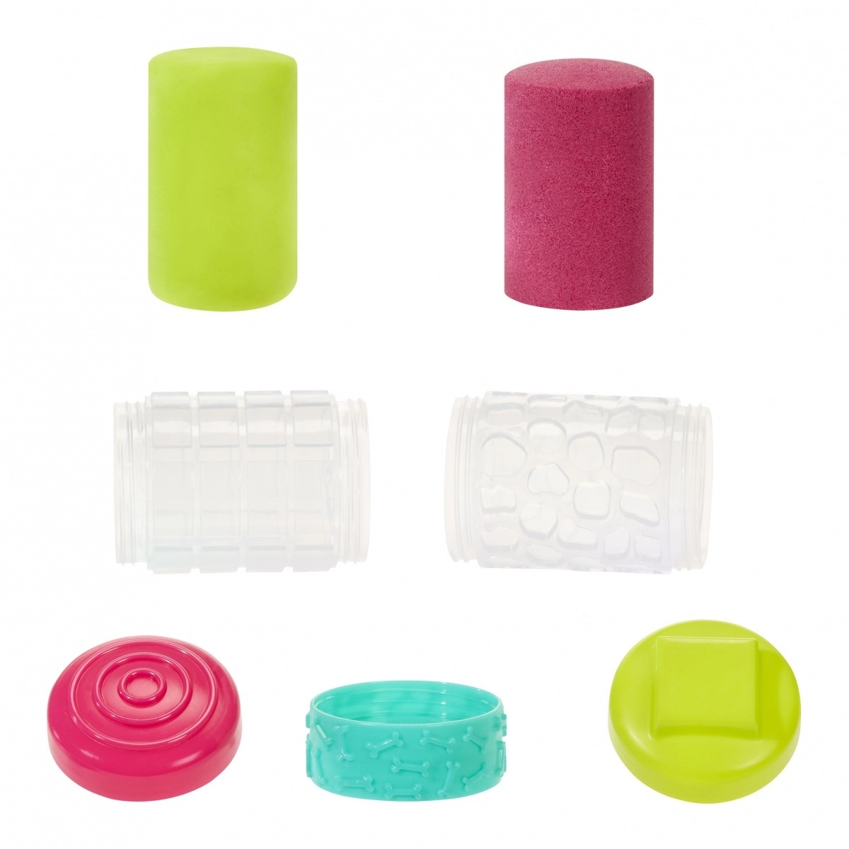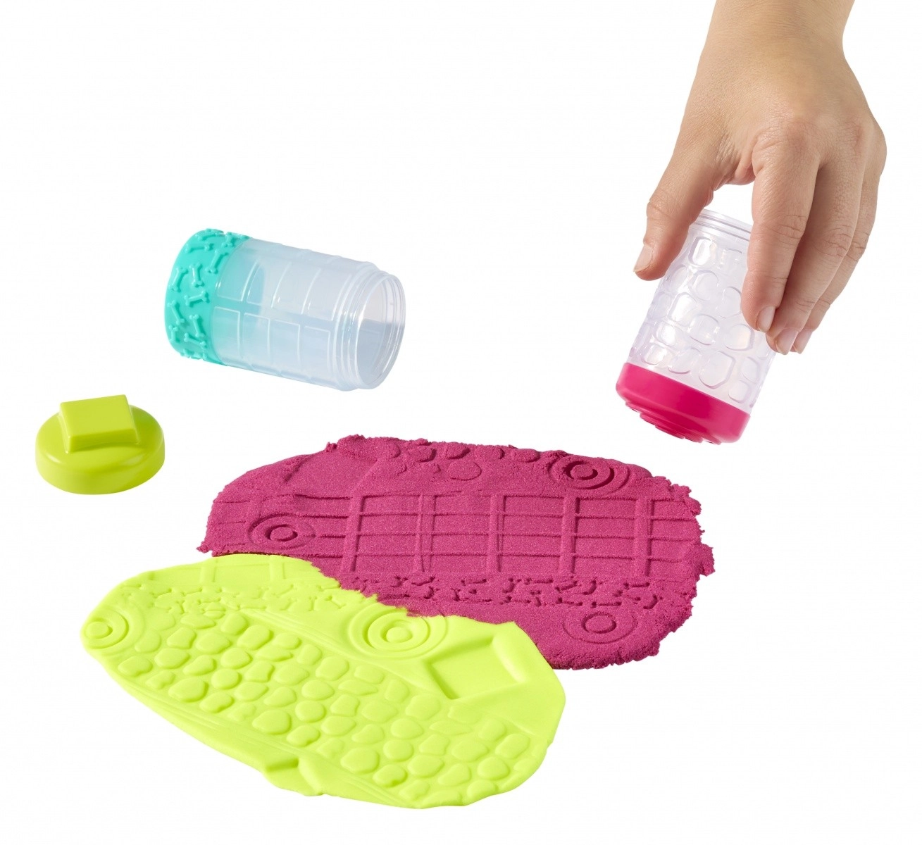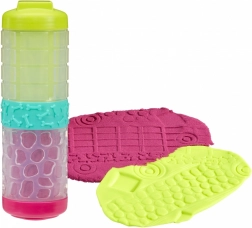 A csomag része egy multifunkciós 4 az 1-ben eszköz cserélhető fejekkel nyújtáshoz és mintanyomáshoz. A fenntartható, okos csomagolás a játék részeként is funkcionál: a tetők pecsétekként, a csatlakozó pedig texturáló hengerként használható. A gyurmát a homokkal keverve új, egyedi tapintású anyag hozható létre, amely támogatja a szenzoros észlelést és a kreativitást.