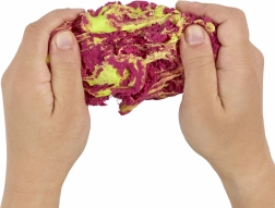 Ez az okos kreatív szett két különböző textúrát kínál a maximális szórakozásért – finom, sima gyurmát és strukturált, formázható homokot. Speciális összetételének köszönhetően a gyurma nem szárad ki, így a gyerekek újra és újra játszhatnak vele. A limezöld és rózsaszín színek ösztönzik a formák és minták keverését, a kreatív alkotást.