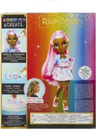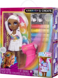 A RAINBOW HIGH Air Brush baba egy „üres vászon”, amelyet a gyerekek a saját elképzeléseik szerint személyre szabhatnak. A készlet tartalmaz egy airbrush kézi eszközt a filctollakhoz, négy lemosható színes filctollat (piros, sárga, kék, lila), sablonokat az egyszerű díszítéshez, valamint teljes fehér öltözéket cipőkkel együtt. A színek permetezővel vagy közvetlenül a tollal is felvihetők a precíz részletekhez – a hajra, ruhára és kiegészítőkre.