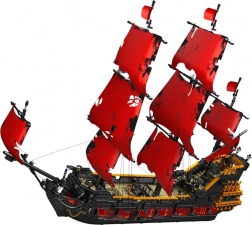 Építőkészlet kalózhajó piros vitorlákkal, 3139 elem