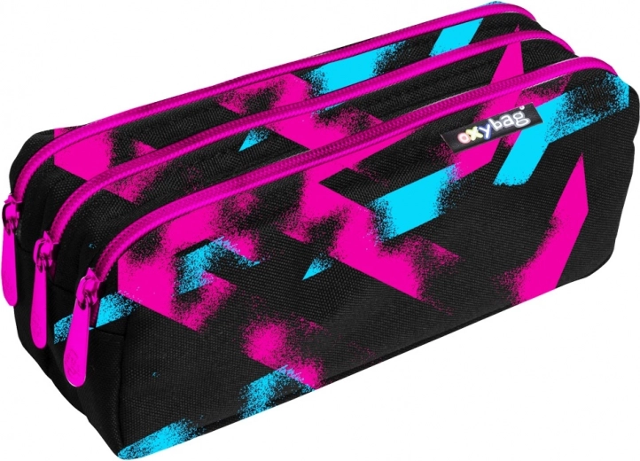 Stílusos iskolai tolltartó három külön cipzárral, amely áttekinthető tárolást kínál írószereknek és apróságoknak. Könnyű kialakítás, praktikus elrendezés és fekete–színes design – remek társ minden iskolai napra.