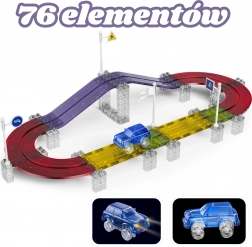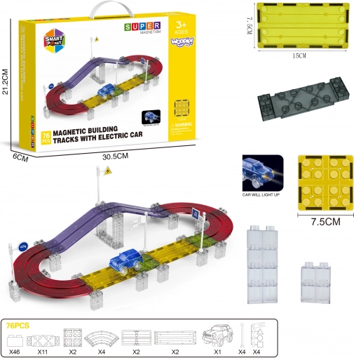 Fedezze fel az építőkészletet, amely a gyerekek fantáziájával együtt növekszik. A mágneses elemek gyorsan és erősen kapcsolódnak egymáshoz, így szerszámok nélkül építhetők hidak, rámpák és éles kanyarok. Az LED-es, megvilágított kisautónak köszönhetően a játék sötétben is látványos.