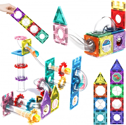 Ez az oktató építőkészlet számtalan konstrukciós lehetőséget kínál – az egyszerű pályáktól a bonyolult és stabil építményekig. A biztonságos mágneses csatlakozásoknak köszönhetően az elemek könnyen illeszkednek és tartják a formát, így a gyerekek élvezhetik a golyók egyenletes gurulását, valamint kísérletezhetnek a sebességgel és az iránnyal.