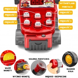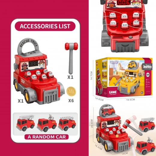 A 2 az 1-ben tűzoltóautó egyszerre kínál izgalmas akciójátékot és padlón guruló autózást. A 3 éves kortól ajánlott játék során a gyerekek finommotorikájukat, kéz–szem koordinációjukat és reflexeiket fejlesztik a puha kalapáccsal célba ütögetve, miközben az áttekinthető pontszámkijelző mutatja az elért pontokat. Az alján található tapadókorongok stabilitást játék közben, a sima kerekek pedig egyenletes gurulást biztosítanak.