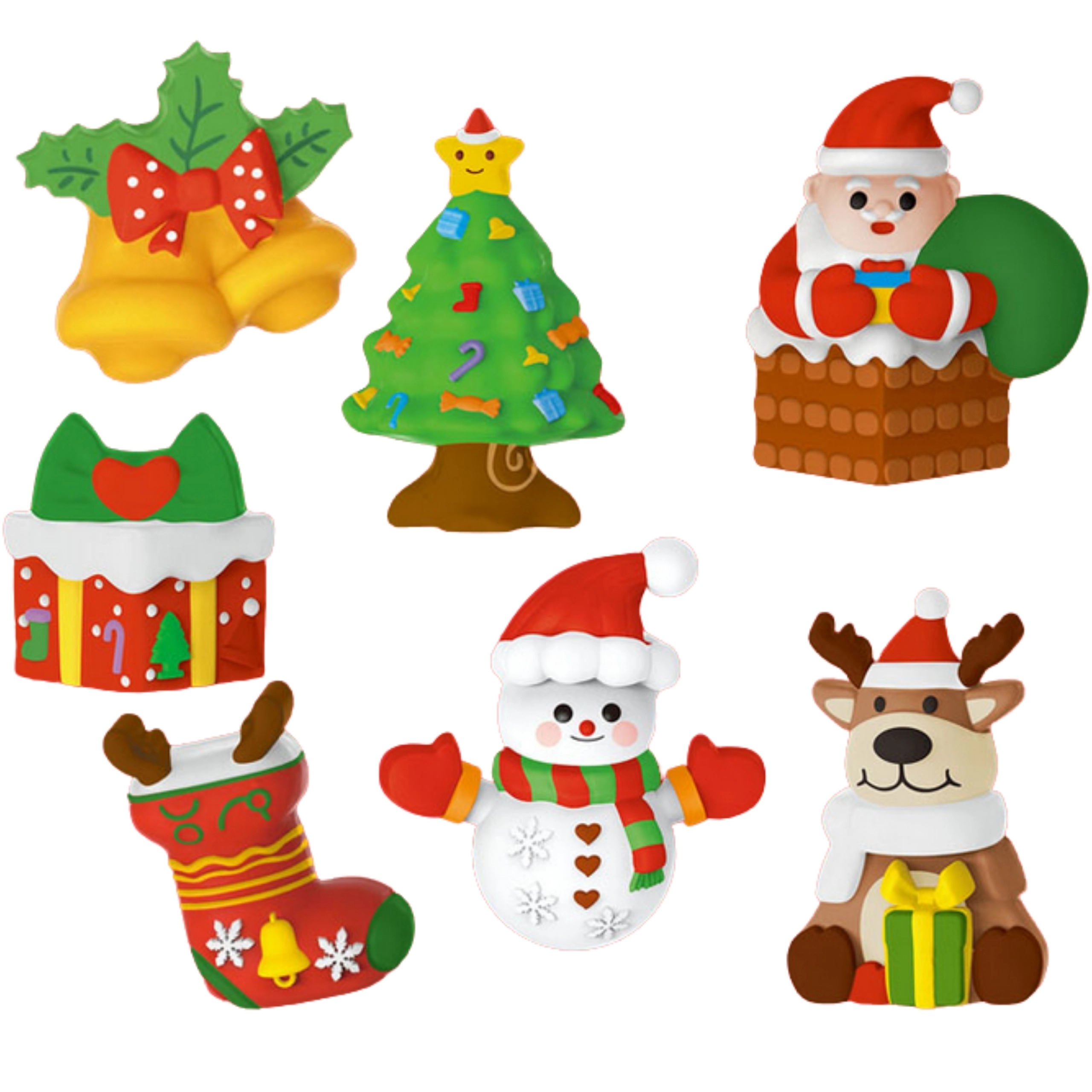 - Karácsonyi motívumok (Mikulás, karácsonyfa, rénszarvas, zokni, ajándék, csengő stb.)