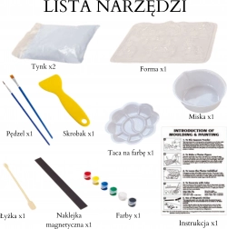 Az eljárás egyszerű: készítsd elő a gipszet, öntsd a formába, hagyd megkeményedni, majd kezdődhet a festés. A csomag teljes felszereltségének köszönhetően nincs szükség további eszközökre. Ez a DIY készlet támogatja a türelem, a pontosság és az elkészült mű feletti egészséges önbizalom fejlődését.
