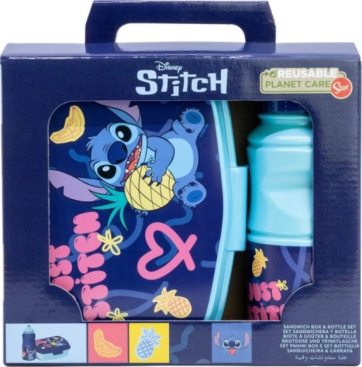 Praktikus gyerek étkészlet 2 az 1-ben STITCH motívummal – ideális iskolába és kirándulásokra. Tartalmaz egy 380 ml-es kulacsot és egy uzsonnás dobozt strapabíró anyagból – könnyű karbantartás, alacsony tömeg és remek dizájn a mindennapi használathoz.