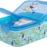 Praktikus uzsonnás doboz BLUEY motívummal, 3 elkülönített rekesszel az ételek áttekinthető tárolásához. Tartós anyagból készült, BPA-mentes, és az hivatalos licencnek köszönhetően a tetőn vonzó dekor található, amit a gyerekek imádni fognak.