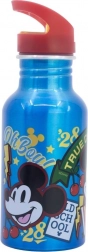 Tartós alumínium ivópalack MICKEY MOUSE mintával, 545 ml űrtartalommal, gyerekeknek és felnőtteknek. Csavaros kupakot, kiömlést gátló szívószálat, praktikus hordfület kínál, és BPA-mentes.