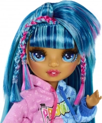 A Rainbow High Jr. High kollekció Skyler Bradshaw babája ikonikus kék színben ragyog, és készen áll a színpadra. A teljesen mozgatható testnek köszönhetően könnyedén beállíthatod látványos pózokba, a mikrofonnal és a mini erősítővel pedig igazi show-t varázsolhatsz. A részletgazdag öltözék, a hosszú kék haj és a tematikus kiegészítők remek választássá teszik játékhoz és kiállításhoz egyaránt.
