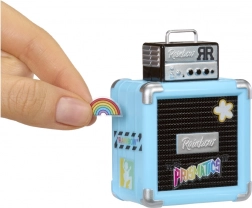 A csomag mindent tartalmaz az azonnali zenei szórakozáshoz – kétrészes divatszettet, stílusos cipőket, állványos mikrofont, mini erősítőt, díszítő matricaívet és fésűt a frizura igazításához. Kombináld a kiegészítőket, alkoss történeteket, és gyűjtsd a banda további tagjait is, hogy teljes legyen a színpad.