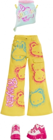 Feltűnő sárga nadrág, pasztell top és rózsaszín tornacipő alkotják az összehangolt szettet, amelyet hangulatod szerint variálhatsz és újrastilizálhatsz.