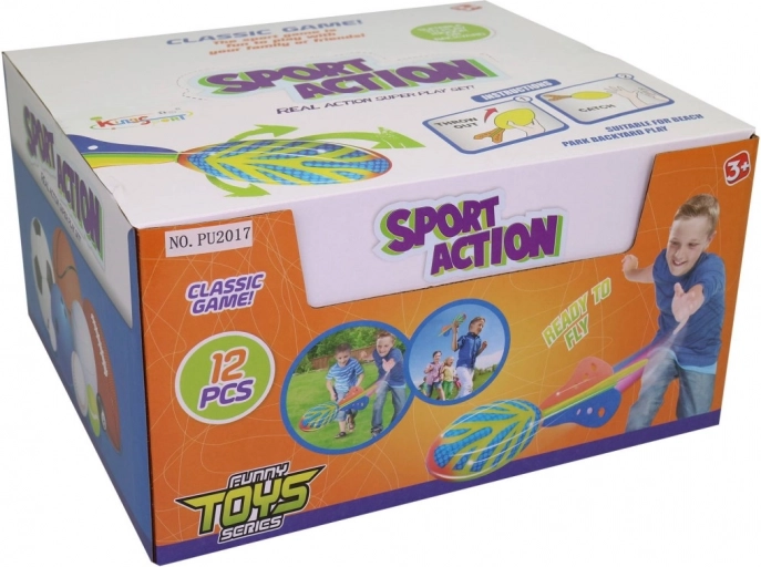 Szórakoztató dobórakéta-készlet szabadtéri játékokhoz, 12 darabbal displayben, egyenként 25 × 8,5 cm méretben. Minőségi műanyagból, 3 különböző színben, 3 éves kortól ajánlott, és nem igényel elemet – csak kibontani és dobni. Remek választás aktív szabadtéri szórakozáshoz gyerekeknek és az egész családnak.