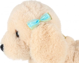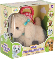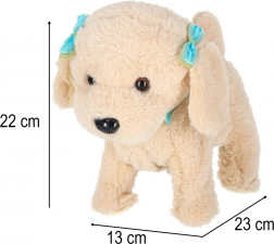A játék puha plüssből és tartós műanyagból készült. Tápellátását 3× AA elem biztosítja (nem tartozék). A csomag része egy stílusos, 65 cm hosszú póráz és színes kiegészítők, amelyek egyedi megjelenést kölcsönöznek a kutyusnak.