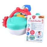 A játék a kádba és a medencébe egyaránt alkalmas, és 18 hónapos kortól örömet szerez. Kompakt méreteinek köszönhetően a kis kezekben is könnyen tartható, élénk színei pedig felfedezésre és pancsolásra csábítanak.