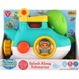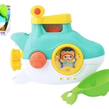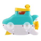 A vidám műanyag tengeralattjáró a fürdőkádban minden fürdést kis kalanddá varázsol. A tapadókorongokkal könnyedén a kád falára vagy a csempére rögzíthető, a felső részébe kanállal vizet öntve figyelhetők a mozgó elemek és a vízhatások. Színes kialakítása támogatja a képzeletet és a finommotorika fejlődését. 12 hónapos kortól ajánlott.
