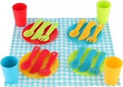 - 22 darabos készlet a teljes terítékhez gyerekpiknikhez.