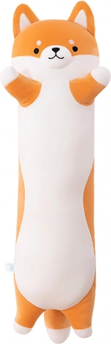 A bájos, hosszúkás formájú plüss shiba kutya gyerekeknek és felnőtteknek egyaránt örömet szerez. Puha, kellemes tapintású plüssből készült, és tökéletes, mint kényelmes ölelgetős játék, dekoratív párna vagy deréktámasz henger. A biztonságos, nem mérgező anyagok és a puhán tömött töltet kényelmet, formatartást és hosszú élettartamot biztosítanak.