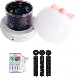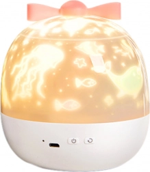 Ez a gyerek projektor éjjeli lámpával megnyugtató hangulatot varázsol az elalváshoz, és játékos dekorációt nyújt nappal. A 6 különböző vetített jelenetnek köszönhetően (születésnap, faló, Télapó, tengeri dinoszaurusz park, rakéta és UFO, állatpark) a gyermek minden nap más történetet élhet át. A lámpa könnyedén átalakítható csillagprojektorról nyugodt éjszakai fényre a belső membránok eltávolításával és a felső fedél lecsukásával.
