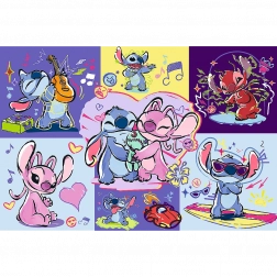 Élvezd a szórakozást a Disney Lilo & Stitch témával! Ez a minőségi, 300 darabos puzzle a bájos Stitchet ábrázolja, és kirakás után 600 × 400 mm méretű képet alkot. Környezetbarát anyagokból készült, kalanderezett papíron, amely csökkenti a tükröződést és megkönnyíti a kirakást.