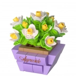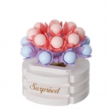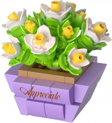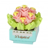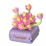 Az elemek könnyen összepattinthatók, így a kezdők is könnyedén boldogulnak. Többféle változat közül választhat – a kaktusztól a nyíló virágokon át az elegáns lila kalászokig. Minden modell látványos, és 3D virágkompozíciót alkot pasztellszínekben.