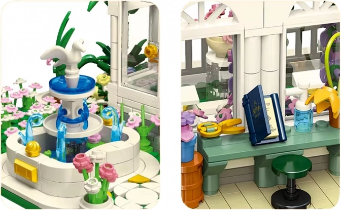 Fedezd fel a klasszikus vonalak harmóniáját és a kerti romantika báját. Az építőkészlet segítségével részletesen kidolgozott pavilont állíthatsz össze szimmetrikus homlokzatokkal, üveg betétekkel és gazdag virágdíszítéssel. A középpontban egy impozáns, átlátszó kupola áll, amely alatt az enteriőr és az exteriőr minden apró részlete érvényesül.