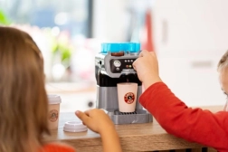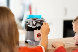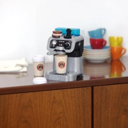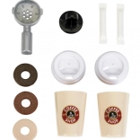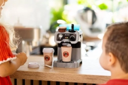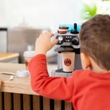 A víztartály és a folyásfunkció lehetővé teszi, hogy a gyerekek egy gombnyomással „kávét” készítsenek a pohárba – pont, mint egy igazi kávézóban.
