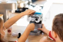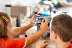 Ez a modern, gyerekbarát kávéfőző kis kávézóvá varázsolja a gyerekkonyhát. Csak töltsd fel a tartályt vízzel, helyezd be a kapszulát, finoman nyomd meg a tamperrel, majd nyomd meg a gombot – a víz úgy folyik a pohárba, mint egy igazi eszpresszónál. Tökéletes kreatív játékhoz barátokkal, testvérekkel vagy plüssökkel.