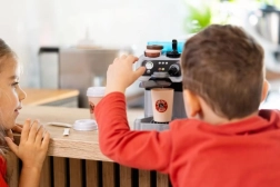 A valósághű kezelőszerveknek, a levehető alkatrészeknek és a biztonságos műanyag kivitelnek köszönhetően a gyerekek megismerik a barista „szakma” alapjait, fejlesztik a finommotorikát, a képzelőerőt és a szociális készségeket. A készlet kompakt, könnyen tisztítható, és remekül kiegészít bármely gyerekkonyhát.