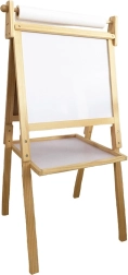 Ez a fa, kétoldalas és multifunkciós tábla kiváló eszköz a kreativitás, a finommotorika és az iskolai készségek fejlesztéséhez. A gyerekek váltogathatják a szárazon törölhető filces rajzolást, a krétával írást, vagy alkothatnak az integrált tekercsről lehúzható papíron.