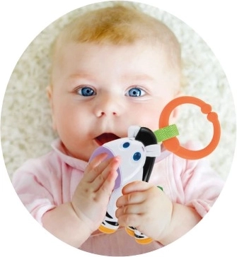 A finom csörgés felkelti a baba figyelmét, és támogatja a hallási észlelést, valamint a kéz–szem koordinációt.