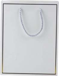 A praktikus zsinór fogantyúk kényelmes hordozást tesznek lehetővé, a gondos kidolgozás pedig kiemeli a táska elegáns karakterét. Kiváló választás mindenkinek, aki esztétikus és funkcionális ajándékcsomagolást keres.
