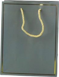 Ez az ajándéktáska minimalista, mégis feltűnő megjelenésével tűnik ki, finom arany szegéllyel a széleken. Minőségi papírból készült, amely tartósságot és megbízhatóságot biztosít még nehezebb ajándékok szállításakor is. Klasszikus formájának és univerzális színeinek köszönhetően nőknek és férfiaknak egyaránt megfelel, és mindenféle ajándékhoz ideális – születésnapra, névnapra, jubileumra vagy céges eseményekre.