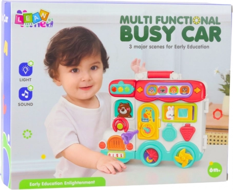Az „Busy Car” interaktív autó egyesíti az oktató panelt, az alakválogatót, a kis zongorát és a mozgó elemeket, amelyek a gyerekeket a színek, formák, fények és hangok világának felfedezésére ösztönzik. A gyerekek megnyomhatják a világító gombokat, kinyithatják az ajtókat, tekerhetik a tárcsákat, csúsztathatják az elemeket, így fejlesztve a kéz–szem koordinációt, a finommotorikát és a képzeletet.