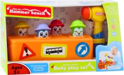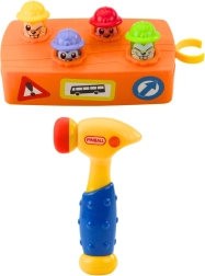 A „üss a vakondra” stílusú interaktív kalapács aktív játékra ösztönzi a gyerekeket. A színes fejek ütés után felvillannak, és vidám hangeffektek szólnak, amelyek serkentik az érzékelést és a koncentrációt. A praktikus fogantyúval a játék után a kalapács könnyen a helyére tehető.