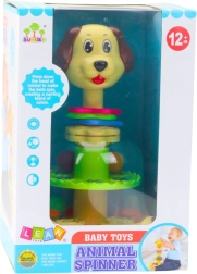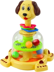 Színes körhinta kutyussal hosszú órákra lefoglalja a babát. Elég megnyomni a kutyus fejét, és a színes golyók forogni kezdenek az átlátszó kupola alatt. Támogatja a finommotorikát, a kéz–szem koordinációt és a koncentrációt. Biztonságos, tartós anyagokból készült a legkisebbek számára.