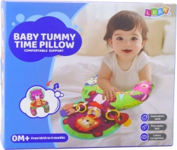 A támogató babapárnát úgy tervezték, hogy az első napoktól segítse a helyes fejlődést. Ergonomikus formája megkönnyíti a hason fekvést, ami természetes módon erősíti az izmokat, és felkészíti a gyermeket a következő mérföldkövekre, mint az ülés vagy a kúszás-mászás. A puha, kellemes tapintású anyagok és a kontrasztos színek serkentik a látást, a hallást és a tapintást.
