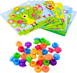 Fedezze fel a szórakoztató és fejlesztő játékot a legkisebbeknek – a kreatív gombmozaikot. A gyerekek színes „gombafej” gombokat illesztenek a képes sablonok nyílásaiba, és saját kompozíciókat alkotnak. Eközben természetes módon fejlesztik a finommotorikát, a kéz–szem koordinációt, a koncentrációt és a színfelismerést. Biztonságos anyagok, lekerekített formák és a praktikus rendszerező teszik kiváló választássá 3 éves kortól.