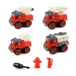 Ez a szórakoztató és oktató készlet ideális azoknak a gyerekeknek, akik szeretik a tűzoltók világát és szívesen barkácsolnak. Minden autót szét lehet csavarozni és újra összerakni, ami hosszú órákra nyújt értelmes szórakozást, és fejleszti a türelmet valamint a logikus gondolkodást.