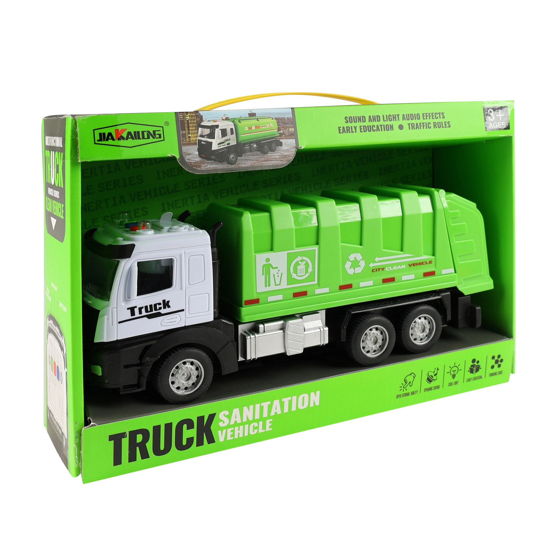 Szerezzen örömet a gyerekeknek ezzel a kiválóan kidolgozott szemetesautóval, amely valósághű részleteivel és szórakoztató funkcióival nyűgöz le. Gombnyomásra aktiválódnak a fény- és hangeffektek, amelyek még élettelibbé teszik a játékot. A lendkerekes meghajtás gondoskodik róla, hogy az autó egy lökés után magától simán továbbguruljon.