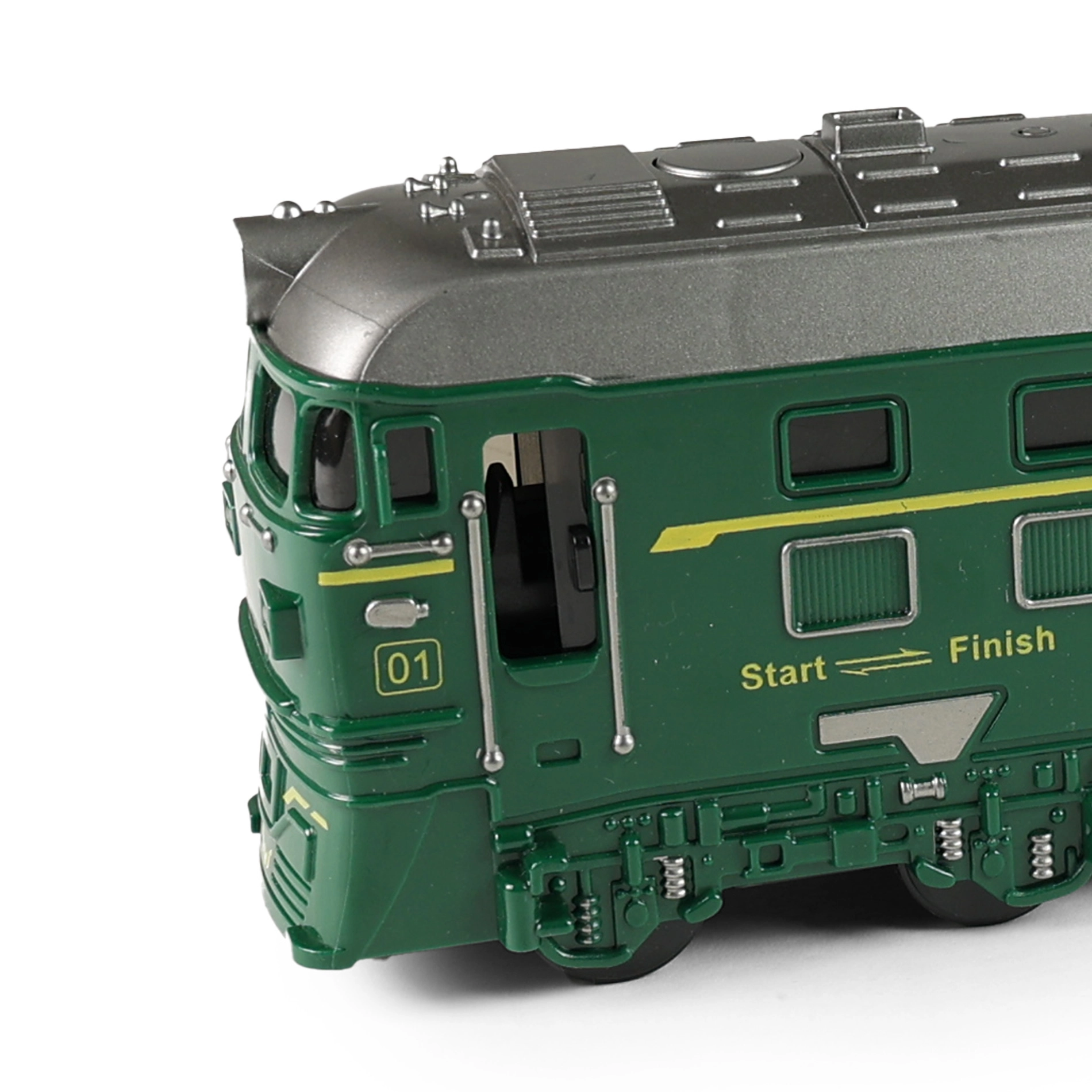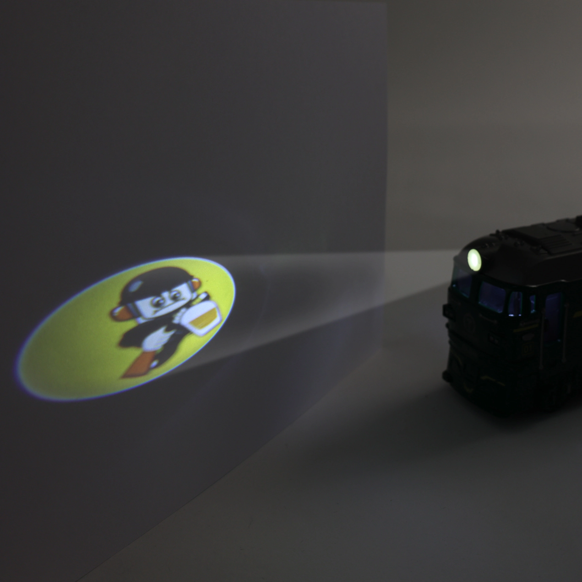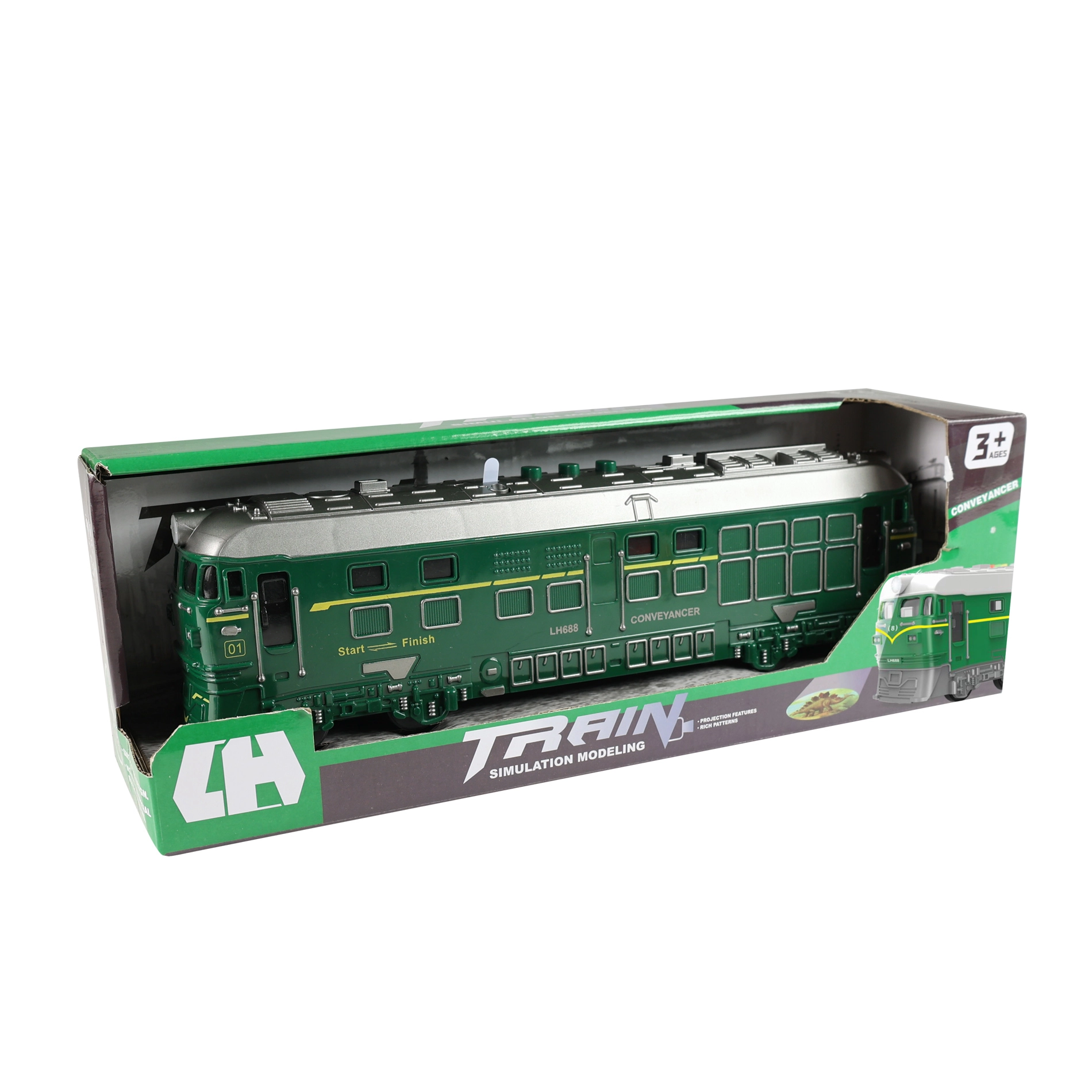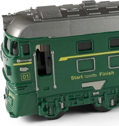Ez a zöld mozdony a kis és nagy vasútrajongóknak egyaránt örömet szerez. A élethű fény- és hangeffekteknek köszönhetően egy igazi vonatot idéz, projektora pedig képet vetít a falra az intenzívebb játékélményért. A lendkerekes hajtás bonyolult irányítás nélkül is egyenletes mozgást biztosít.