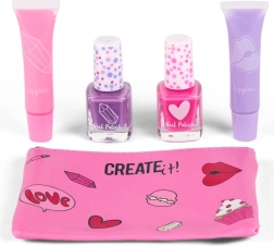 Stílusos sminkkészlet kozmetikai táskával, ideális fiatal lányoknak, akik biztonságosan szeretnék felfedezni a sminkelés világát. Tartalmaz 2 ajakfényt (6,2 ml), 2 körömlakkot (5 ml) és egy praktikus kozmetikai táskát a könnyű tároláshoz. A termékek gyermekbőrre lettek kialakítva, könnyen felvihetők, és kompakt méretüknek köszönhetően otthonra és utazáshoz is kiválóak.