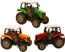 Kicsi, mégis masszív fém traktor felhúzós (pull-back) meghajtással, amely örömet szerez minden kis mezőgazdasági géprajongónak. Elég hátrahúzni és elengedni – a traktor magától előreindul. Tartós fém test és részletgazdag kidolgozás három színben: piros, zöld és narancssárga.