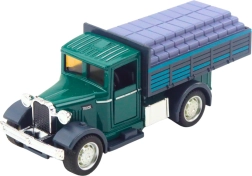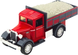 A klasszikus teherautó élethű modellje a munkagépek kis és nagy rajongóinak egyaránt örömet szerez. A részletgazdag fülke nyitható ajtókkal, a fém alkatrészek és a minőségi műanyag kombinációja, valamint a masszív felépítmény hiteles megjelenést és hosszú élettartamot kölcsönöz a játéknak. Hátrahúzás után a jármű a pull back meghajtásnak köszönhetően magától előreindul.