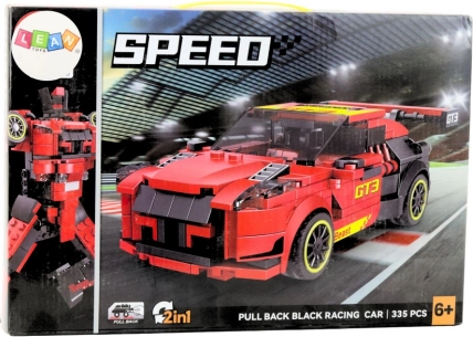 2 az 1-ben építőkészlet: GT3 versenyautó és robot, 335 darab. Minőségi műanyag, pontos illeszkedés, pull-back hajtású autó. Szuper szórakozás kis építőknek.