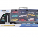 Szórakoztató készlet a kis sofőröknek: kamion kilövő funkcióval, 11 különböző típusú kisautó és 1 helikopter. Könnyű, műanyag szett hordfogantyúval a könnyű szállításhoz, ideális 3 éves kortól, utazáshoz és a gyerekszobába egyaránt kiváló.