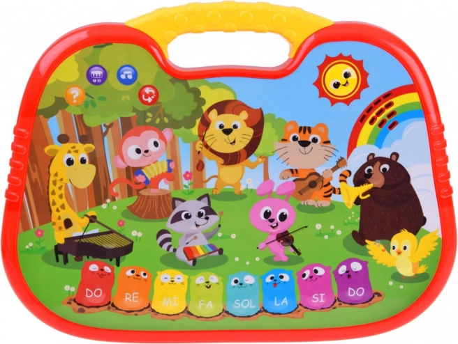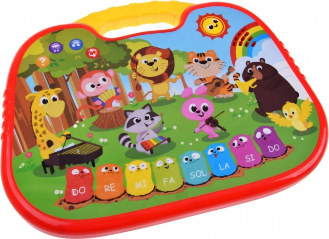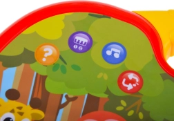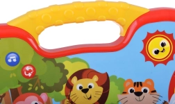 Az interaktív, zenélő zongorácska élénk színeivel, kedves állatkás grafikájával és praktikus fogantyújával hívja fel magára a figyelmet, így könnyen hordozható. Az érintésérzékeny, puha gombok finoman reagálnak, ezért a játék a kisebbek számára is intuitív. A szabad billentyűjáték mellett okos üzemmódokat is kínál a szórakozáshoz és tanuláshoz.