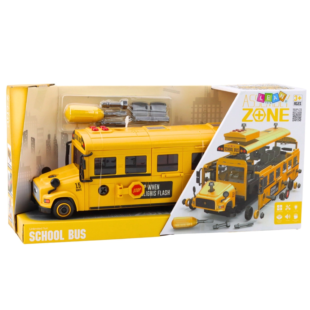 Az iskolabusz építőkészlet fejleszti a finommotorikát, a türelmet és a logikus gondolkodást. A gyerekek önállóan összeszerelhetik és szétszerelhetik az egyes részeket, áthelyezhetik a mozgatható üléseket, és felfedezhetik a szerkezet- és gépészet alapjait. A súrlódásos meghajtásnak köszönhetően a busz meglökés után magától elindul, a fények és hangok (motor, duda, csengők, menet) pedig fokozzák a játék realisztikusságát.